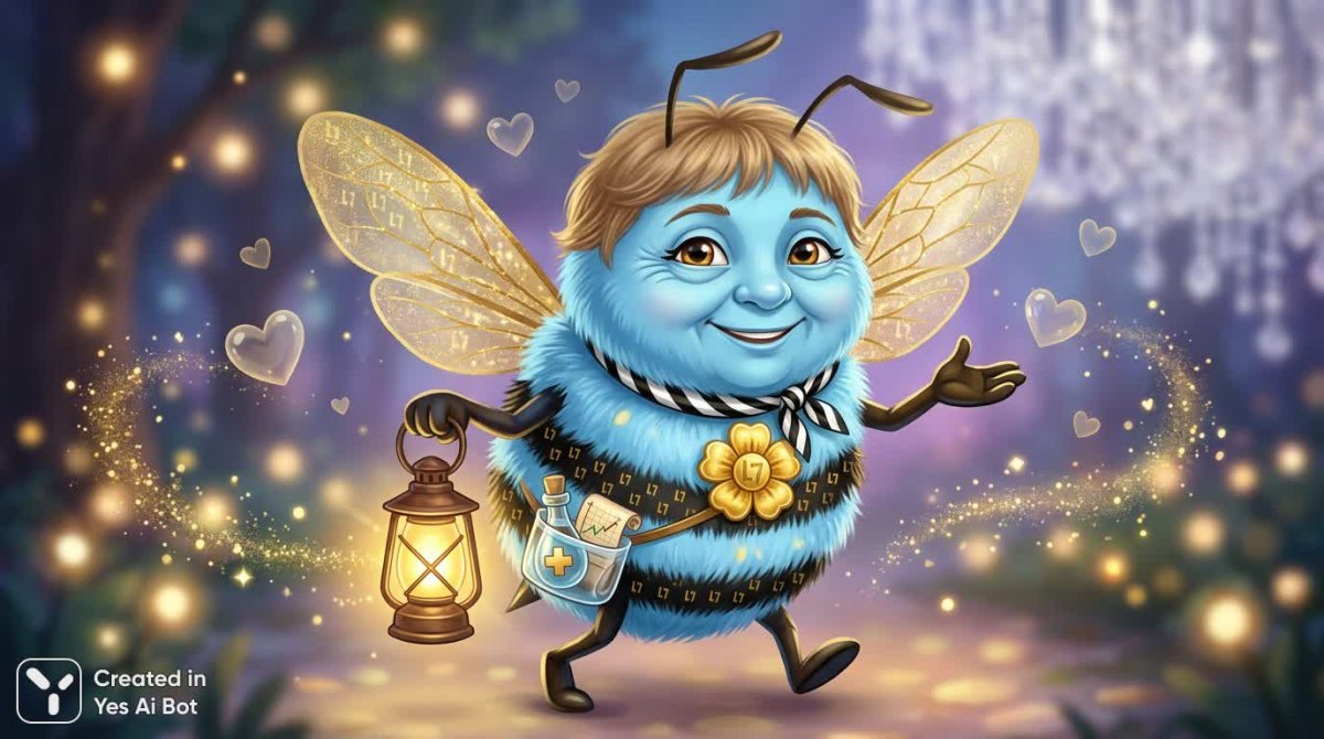 Создай маскот Образ: Пушистый голубой шмель с золотыми крыльями. Характер: Добрый, весёлый, поддерживающий, энергичный. Особенности: Круглое тельце небесно-голубого цвета с лёгкой текстурой Золотые полупрозрачные крылья с лёгким мерцанием Большие добрые глаза с «лучиками» (символ возраста — уважение к опыту) В лапках всегда что-то: капля (здоровье), график (доход) вокруг сердечки (забота) На пузике — золотой значок-цветок (символ раскрытия потенциала) 1. Динамичность и целеустремленность Добавьте элемент движения: пусть маскот выглядит так, будто он постоянно в поиске новых открытий. Например, он может держать карту приключений или к...
