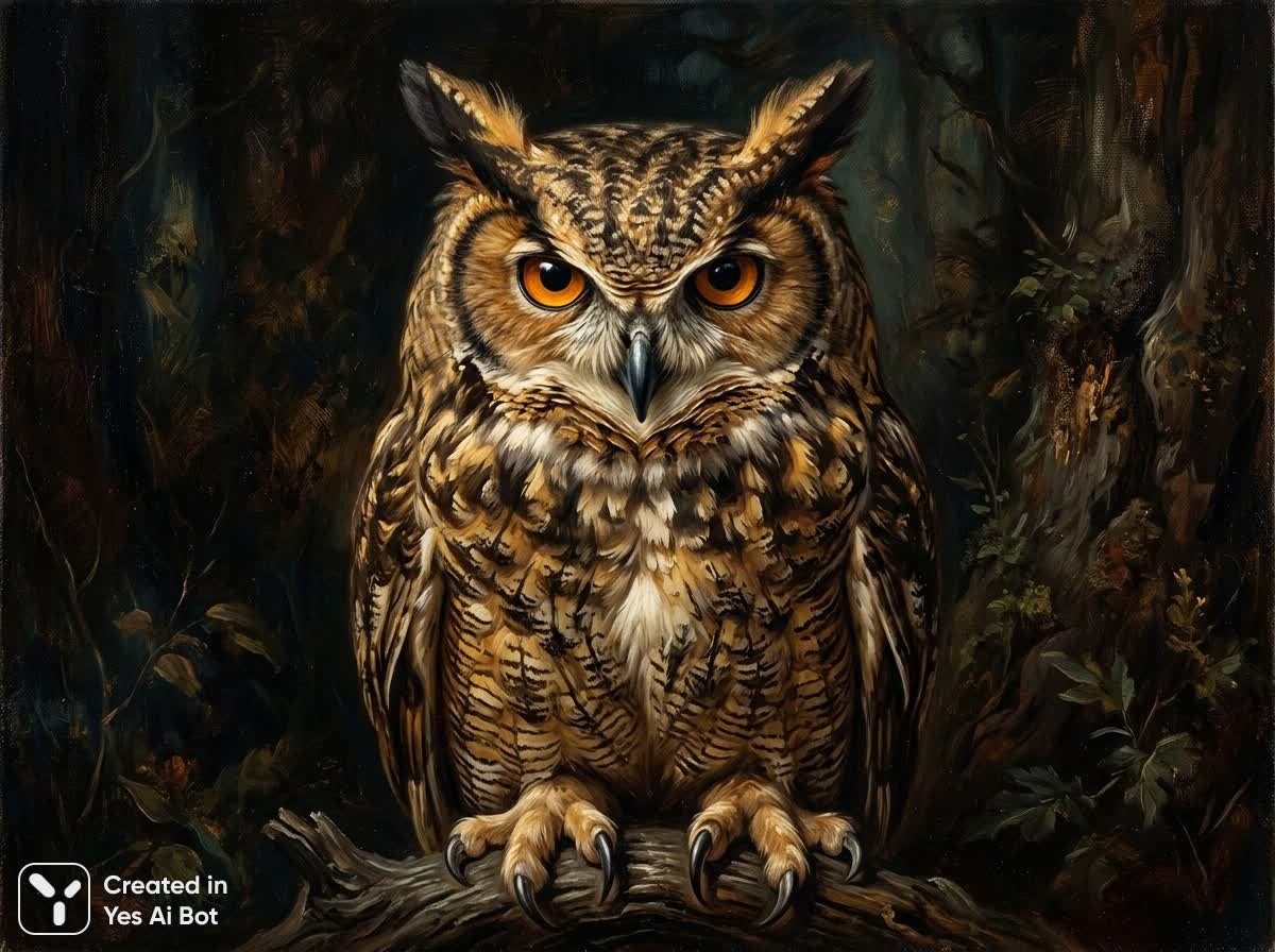 nanobanana Величественная сова: взгляд силы и таинственности в реалистичной живописи маслом. Генерация из нейросети Nano Banana
