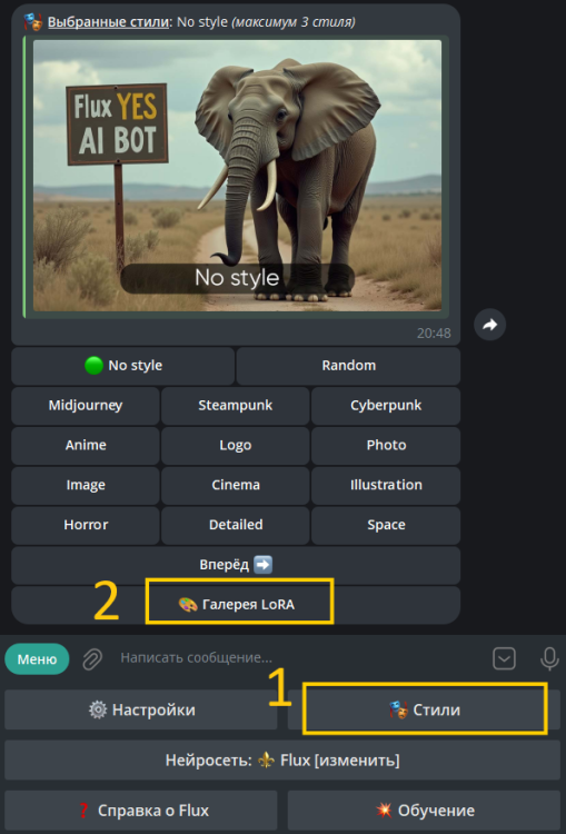 Вы узнаете как создать картинку с текстом в нейросети FLUX без установки сторонних приложений в Telegram-боте. Научитесь использовать LoRA FLUX. Рассмотрим основные правила составления текстовых запросов (промптов) на русском языке, а также преимущества и недостатки FLUX. Одним из самых значительных достижений последних месяцев стало появление нейросети FLUX, разработанной стартапом Black Forest Labs. Эта нейросеть обещает поднять качество генерации изображений на совершенно новый уровень, превосходя таких гигантов, как Midjourney и DALL-E. Предыстория FLUX уходит корнями в Stability AI и к ключевым инженерам Робину Ромбаху, Андреасу Блаттману и Доминику Лоренцу, а также к Патрику Эссеру, создателю метода латентной диффузии. Эти умы объединились для создания чего-то уникального, и так родилась FLUX. Эта нейросеть уже сейчас успешно справляется с генерацией человеческих рук, которые традиционно являются сложной задачей для подобных сервисов. Имеет значительно меньше мутаций и высокое качество картинки. Умеет классно работать с текстом. На примерах вы сможете во всем в этом убедиться. Для того чтобы пользоваться FLUX, вам не потребуется установка сторонних приложений и мощная видеокарта. Чтобы начать создание картинок в нейросети FLUX, вы можете воспользоваться Telegram-ботом, который поддерживает составления текстовых запросов на русском языке. Однако следует учитывать, что на данный момент текст, создаваемый на изображениях, будет доступен исключительно на английском языке. Прежде чем создать картинки, рассмотрим основные правила составления текстовых запросов (промптов). Это очень важный момент, который не стоит пропускать. Правила составления промптов для Flux Правила составления запросов для Flux в целом аналогичны тем, что используются при взаимодействии с другими нейросетями, такими как Midjourney. Но Flux демонстрирует более высокую точность в интерпретации запросов. Детализация Для достижения наилучших результатов при использовании Flux, важно предоставлять четкие и детализированные запросы. Вместо простого слова «кошка» лучше сформулировать запрос так: «рыжая кошка с ярко-зелеными глазами, уютно устроившаяся на подоконнике, за которым раскинулся осенний пейзаж с золотыми листьями и серым небом». Структура Рекомендуется придерживаться структуры «объект + детали + фон + стиль», дополнительно использовать технические детали. Это позволит нейросети более точно уловить ваши пожелания. Указывайте все ключевые моменты: кто или что должно быть в фокусе, какие детали необходимо включить, каковы характеристики одежды и аксессуаров, какие эмоции должны проявляться на лицах персонажей, а также временные и пространственные рамки событий. Например: 1. Основной объект — котенок британской породы. 2. Детали — любопытно исследует комнату, на нем маленький синий ошейник, а рядом лежит игрушка в виде мышки. 3. Фон и окружение — вокруг уютная обстановка с мягким диваном и книжными полками, на окне светит яркое утреннее солнце, создавая теплые блики на полу. 4. Стиль и тон — реалистичный стиль, с элементами уюта и игривости. Итоговый промпт: «Котенок британской породы, любопытно исследует комнату, на нем маленький синий ошейник, а рядом лежит игрушка в виде мышки, вокруг уютная обстановка с мягким диваном и книжными полками, в окно светит яркое утреннее солнце, создавая теплые б