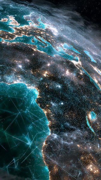 midjourney Космическая сеть: Изометрия будущего с элементами безумия и квантового света. Нейронная сеть Миджорни
