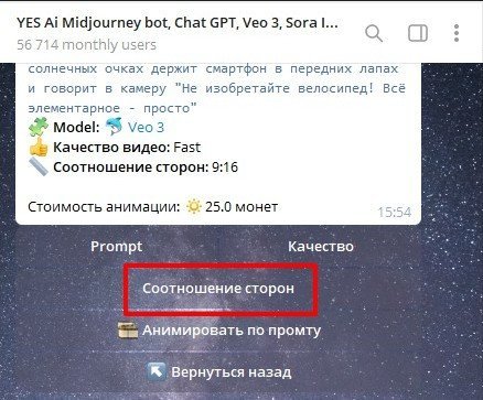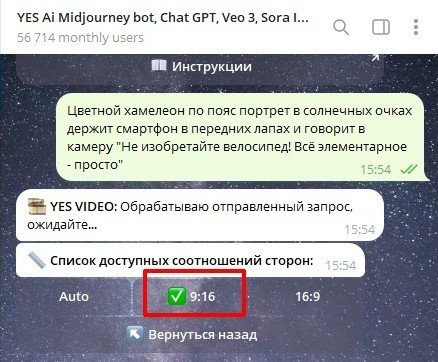 Узнайте, как легко сделать короткие видео в портретном режиме с помощью нейросети Veo 3. Пошаговая инструкция по созданию видеороликов в формате 9:16 и полезные советы, чтобы ваш контент выглядел профессионально. Откройте новые возможности для генерации видео онлайн. Вертикальные видео давно стали привычным языком интернета. Их смотрят в метро, на работе во время совещаний (да-да, мы знаем) и даже бабушки в очереди в поликлинике. Сегодня короткие вертикальные видео можно создавать онлайн без лишнего монтажа и сложных программ. На помощь приходит Veo 3 — нейросеть, которая умеет собирать ролики в вертикальном 9:16 формате: от мемных шортсов до ярких рекламных клипов. С её помощью можно превратить даже дачный урожай в вирусный контент. Зачем создавать короткие видео в формате 9:16 Вертикальные ролики нужны всем: Блогерам — для роста подписчиков и лайков; Компаниям — чтобы продавать быстрее, чем люди успевают моргнуть; Родителям и бабушкам — чтобы показать пироги в формате Reels, а не пересылать фото в чат «Семья». А теперь представьте сентябрь. Урожай прёт с каждой грядки: яблоки, помидоры, огурцы. Но главный герой сезона, конечно, кабачок. Дачники хватаются за голову — куда девать десятки кабачков? В рагу? В банки? А может — в TikTok? Современный способ переработки урожая — это не только закрутки с икрой, но и вертикальные видеоролики. И именно тут мы снова вспоминаем Veo 3. Генерируем видео в вертикальном формате через Veo 3 Мы решили проверить, как нейросеть справится с кабачковой вселенной. Вот несколько запросов: Поезд из кабачков мчится по радужной дороге 2-вертикальный формат видео через нейросеть Veo 3.mp4 — получилось похоже на кадр из красивого добротного мультфильма. Толпа кабачков танцует на дискотеке в клубе 3-вертикальный формат видео через нейросеть.mp4 — это явно формат для TikTok. Дачник-супергерой в плаще спасает деревню от гигантских кабачков 4-портретное видео через нейросеть Veo 3.mp4 — тут искусственный интеллект будто почувствовал настроение августа. Результат? Все ролики сразу адаптированы под вертикаль 9:16. Не нужно ничего обрезать: цвета яркие, композиция сбалансированная, и даже самый ленивый зритель досмотрит ролик до конца. Алгоритм создания коротких видео в портретном режиме Генерацию видео мы всегда начинаем с картинки — это удобный первый шаг, из которого потом будет сделана анимация. Так мы экономим время и силы. ведь проще проверить идею в статике, чем сразу тратить ресурсы на видео, которое может оказаться неудачным. Для генерации сюжетов используем Sora Images. Это нейросеть, которая понимает запросы простыми словами и сразу рисует именно то, что хочет пользователь. Не нужно придумывать длинные описания — достаточно пары фраз вроде «кабачковая ракета» или «гигантский кабачок в космосе», и картинка появляется за секунды. 1-вертикальный формат видео.mp4 Дальше в дело вступает Veo 3. Эта нейросеть умеет превращать картинку и текстовый запрос в готовое видео: добавляет движение, динамику, анимацию и при этом сразу адаптирует ролик под вертикальный формат — для Shorts, Reels или VK клипов. Проще говоря, Sora создаёт основу, а Veo 3 оживляет её и делает полноценный мини-фильм. Для создания видео делаем простые шаги: Шаг 1 Переходим в Yes Ai Bot и выбираем Sora Images Шаг 2 Пишем промпт и отправляем его в нейросеть. Кстати запросы можно отправлять на русском 