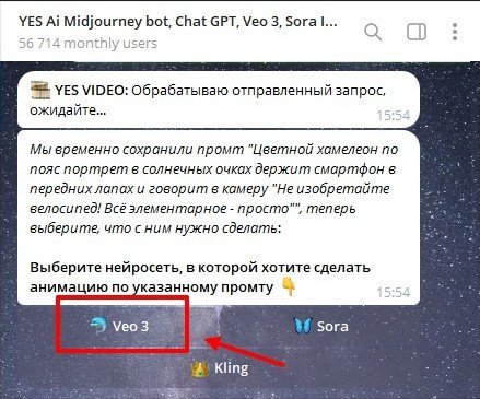 Генерация видео на русском языке через нейросеть Veo 3 без VPN и регистрации аккаунта. Узнайте, как работает Veo 3 на русском языке, какие возможности генерации видео доступны для пользователей из России и как начать использовать нейросеть уже сейчас. Пока одни настраивают VPN, другие уже делают ролики через Veo 3 — прямо в Telegram. Никаких входов, авторизаций и сообщений об ошибке — просто написал текст и получил видео. Теперь Veo 3 запускается без ограничений — и главное, она понимает русские промпты так же хорошо, как английские. Работает всё — и мимика, и голос, и движение. Ниже рассмотрим, как происходит генерация через нейросеть Veo 3 на русском и какие результаты можно получить. Официально Veo 3 недоступна, но кого это останавливало? Сообщество давно нашло обход, и теперь генерация видео на русском работает без VPN. Генерация видео с помощью нейросети Veo 3 Почему Veo 3, а не 2? Вторая версия была прошлой стабильной моделью Google, которая умела создавать короткие видеоролики по тексту или изображению — до восьми секунд, без звука. В Veo 3 компания впервые объединила видео и аудио: теперь нейросеть сама добавляет речь, звуки и музыку, синхронизируя их с движением и мимикой в кадре. Это уже не обновление, а переход на новый уровень — текст наконец оживает: появляются голос, эмоции и реальная динамика кадра. После выхода третьей версии Veo интерес к нейросети вырос мгновенно. Из лабораторного инструмента она превратилась в студию на ладони: Пользователи штампуют шортсы для Дзена и VK — нейросеть идеально попадает в формат 9:16. Фанаты аниме используют её для косплея: совместно с Sora Images получается почти студийная картинка. А кто-то делает абсурдные мемы или вирусные видео про котов, читающих новости. Идеи у пользователей самые разные — от мемов до мини-фильмов. Veo 3 давно вышла за рамки обычного генератора видео. Теперь она фактически выполняет роль режиссёра — управляет движением, светом, эмоциями и звуком, собирая готовую сцену без сложных настроек и технических обходов. Как бы ни старалась нейросеть, она не подскажет сюжет. Историю всё равно придётся придумать вам. Именно вы задаете историю, настроение и смысл — а нейросеть лишь помогает воплотить это в картинку. И то, как она это делает, действительно заслуживает внимания. Генерация на русском языке В оригинале Veo 3 создаёт видео только на английском. Промпты, озвучка, эмоции — всё настроено на англоязычную аудиторию. Для нас это неудобно: нужно переводить текст, подгонять интонации, а потом ещё чистить результат в редакторе. Разработчики Yes Ai Bot нашли обход — и фактически научили модель говорить по-русски. Теперь она понимает и команды, и интонации. Промпты задаются напрямую без перевода и без потери смысла. Бот не просто понимает команды — он корректно воспроизводит речь, интонацию и эмоции, как будто озвучивает живой актёр. Для нашего региона это особенно актуально: видео можно делать сразу с русской озвучкой, без редактирования и монтажа. Хочешь — создавай ролики для бизнеса, хочешь — делай контент для Дзена или Reels. Как получить доступ к аккаунту Veo 3 не используя Google Flow Если вы ещё не пробовали, Yes Ai Bot — это, пожалуй, самый простой способ запустить Veo 3 без VPN и регистрации на зарубежных сайтах. Google традиционно любит всё усложнять: интерфейс у Google Flow выглядит как панель управления космическим аппаратом. Даж