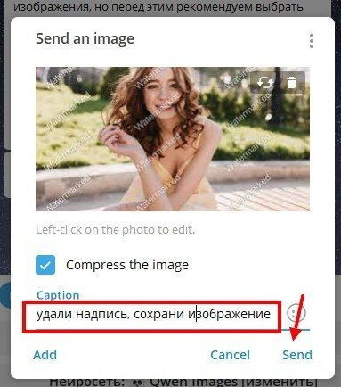 Как убрать текст с фото или картинки онлайн нейросетью: быстрое удаление надписей с изображений. Удалять текст с картинки онлайн с помощью нейросети очень просто: достаточно загрузить изображение в Yes AI Bot и нажать пару кнопок, чтобы он стер лишние надписи. Теперь вы легко сможете удалить надпись с фотографии, при этом качество ваших файлов останется высоким. Yes AI Bot работает без установки и подходит для разных задач. У каждого найдётся фото, которое могло бы стать идеальным, если бы не подпись в углу или громоздкий водяной знак. Иногда это старая карточка из архива, иногда — рабочий снимок для презентации или реклама, где мешает чужой текст. Причин избавиться от лишних надписей масса: сохранить воспоминания в чистом виде, сделать фото презентабельным или подготовить картинку для публикации. Раньше приходилось часами «вычищать» такие детали в редакторах, а теперь достаточно пары кликов. Нейросеть сама понимает, что нужно убрать, и аккуратно восстанавливает фон, будто текста там и не было. Быстро, просто и без лишних хлопот. Какая нейросеть помогает удалить текст с картинки Представь помощника, который «видит» картинку почти как человек. Он понимает, где фон, где надпись, а где важный объект. И если вам нужно убрать текст с фото, больше не придется ковыряться в сложных редакторах — пара кликов, и дело сделано. Конечно, не все такие инструменты одинаковые. Одни больше подходят для креативных картинок, другие аккуратнее убирают детали. Но тренд общий: нейросети способны удалить текст с картинки. Даже сложная ретушь теперь делается онлайн за минуты — фон остаётся живым, а фото выглядит естественно. Что за нейросеть? В этой статье мы попробуем нейросеть Qwen, которую совсем недавно интегрировали в Yes Ai Bot. Это модель из Китая, которая умеет работать и с текстом, и с картинками. Ты пишешь команду словами, а она старается выполнить её максимально точно. Можно сказать, это цифровой художник, которому не надо объяснять часами — достаточно пары строк. Как удалить текст с картинки через нейросеть пошаговая инструкция Мы уже поговорили, что нейросети умеют стирать лишнее с фото и подстраивать фон. Теперь давайте посмотрим, как это работает на практике. Ниже вы найдёте простую инструкцию о том, как убрать текст с фотографии или картинки через нейросеть буквально за пару шагов: Шаг 1 Переходим в Yes Ai Bot сразу на нужную функцию Шаг 2 Загружаем фото с ненужной надписью и пишем запрос в стиле «удали текст, сохранив фон». Шаг 3 Нажимаем на кнопку «Функции Qwen» Шаг 4 Нажимаем кнопку «Удалить Watermark». Шаг 5 Сохраняея обновлённое изображение. Всё. Никаких десятков слоёв в Photoshop и танцев с выделением области изоображения. Ограничения и особенности при удалении текста с фото и изображений Важно понимать, что нейросеть — это не человек-художник, а алгоритм. Она не «думает» и не «понимает» задачу по своему мнению, она автоматически выполняет команды, которые вы ей задаёте. Поэтому результат иногда может отличаться от ожиданий. На что стоит обратить внимание: Многое зависит от самого фото: на одном изображении текст исчезнет идеально, на другом могут появиться артефакты; Вместо удалённой надписи иногда возникает пустая область или странная текстура; Иногда придётся поэкспериментировать с формулировкой запроса, чтобы получить стабильный результат; Бывают задачи, с
