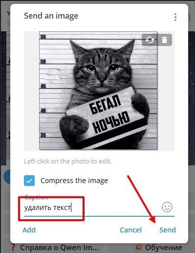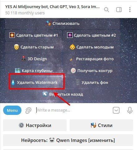 Как убрать текст с фото или картинки онлайн нейросетью: быстрое удаление надписей с изображений. Удалять текст с картинки онлайн с помощью нейросети очень просто: достаточно загрузить изображение в Yes AI Bot и нажать пару кнопок, чтобы он стер лишние надписи. Теперь вы легко сможете удалить надпись с фотографии, при этом качество ваших файлов останется высоким. Yes AI Bot работает без установки и подходит для разных задач. У каждого найдётся фото, которое могло бы стать идеальным, если бы не подпись в углу или громоздкий водяной знак. Иногда это старая карточка из архива, иногда — рабочий снимок для презентации или реклама, где мешает чужой текст. Причин избавиться от лишних надписей масса: сохранить воспоминания в чистом виде, сделать фото презентабельным или подготовить картинку для публикации. Раньше приходилось часами «вычищать» такие детали в редакторах, а теперь достаточно пары кликов. Нейросеть сама понимает, что нужно убрать, и аккуратно восстанавливает фон, будто текста там и не было. Быстро, просто и без лишних хлопот. Какая нейросеть помогает удалить текст с картинки Представь помощника, который «видит» картинку почти как человек. Он понимает, где фон, где надпись, а где важный объект. И если вам нужно убрать текст с фото, больше не придется ковыряться в сложных редакторах — пара кликов, и дело сделано. Конечно, не все такие инструменты одинаковые. Одни больше подходят для креативных картинок, другие аккуратнее убирают детали. Но тренд общий: нейросети способны удалить текст с картинки. Даже сложная ретушь теперь делается онлайн за минуты — фон остаётся живым, а фото выглядит естественно. Что за нейросеть? В этой статье мы попробуем нейросеть Qwen, которую совсем недавно интегрировали в Yes Ai Bot. Это модель из Китая, которая умеет работать и с текстом, и с картинками. Ты пишешь команду словами, а она старается выполнить её максимально точно. Можно сказать, это цифровой художник, которому не надо объяснять часами — достаточно пары строк. Как удалить текст с картинки через нейросеть пошаговая инструкция Мы уже поговорили, что нейросети умеют стирать лишнее с фото и подстраивать фон. Теперь давайте посмотрим, как это работает на практике. Ниже вы найдёте простую инструкцию о том, как убрать текст с фотографии или картинки через нейросеть буквально за пару шагов: Шаг 1 Переходим в Yes Ai Bot сразу на нужную функцию Шаг 2 Загружаем фото с ненужной надписью и пишем запрос в стиле «удали текст, сохранив фон». Шаг 3 Нажимаем на кнопку «Функции Qwen» Шаг 4 Нажимаем кнопку «Удалить Watermark». Шаг 5 Сохраняея обновлённое изображение. Всё. Никаких десятков слоёв в Photoshop и танцев с выделением области изоображения. Ограничения и особенности при удалении текста с фото и изображений Важно понимать, что нейросеть — это не человек-художник, а алгоритм. Она не «думает» и не «понимает» задачу по своему мнению, она автоматически выполняет команды, которые вы ей задаёте. Поэтому результат иногда может отличаться от ожиданий. На что стоит обратить внимание: Многое зависит от самого фото: на одном изображении текст исчезнет идеально, на другом могут появиться артефакты; Вместо удалённой надписи иногда возникает пустая область или странная текстура; Иногда придётся поэкспериментировать с формулировкой запроса, чтобы получить стабильный результат; Бывают задачи, с