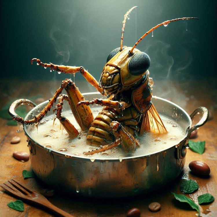✏️ Prompt: Кузнечик застрявший в кастрюле, торчат только лапки и усики 🎭 Styles: Sci-Fi 🧩 Model: 🔮 DALLE-3 [Multi-image] Следующее задание: медуза + виноград