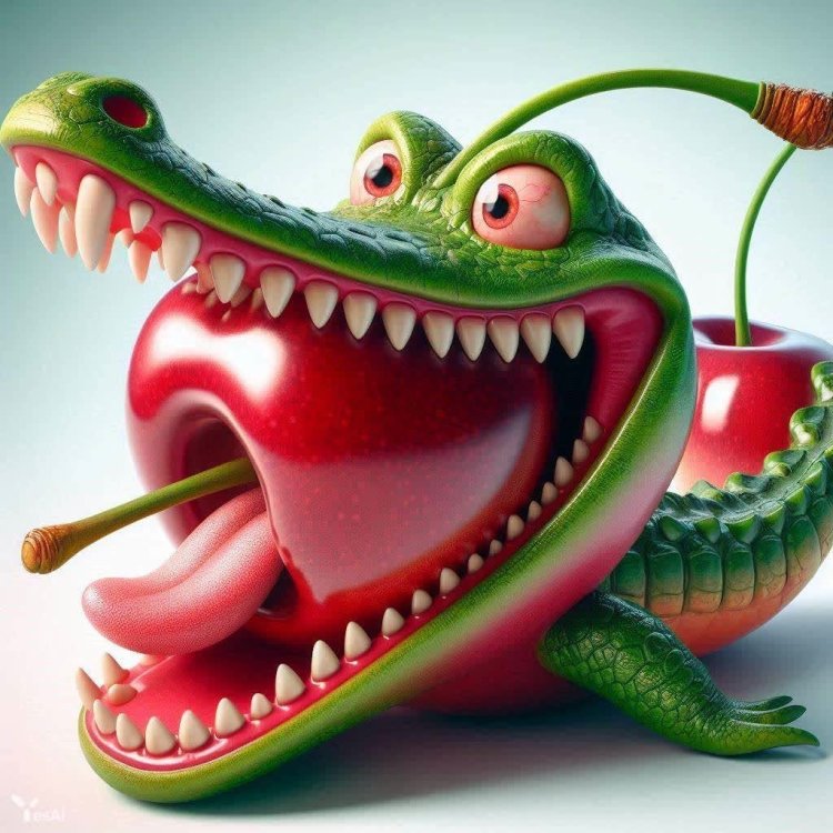 13. ✏️ Prompt: Забавный гибрид мультяшного крокодила и сочной спелой вишни 🎭 Styles: Surrealism 🧩 Model: 🔮 DALLE-3 [Multi-image] Следующее задание: Терминатор и кукла Барби
