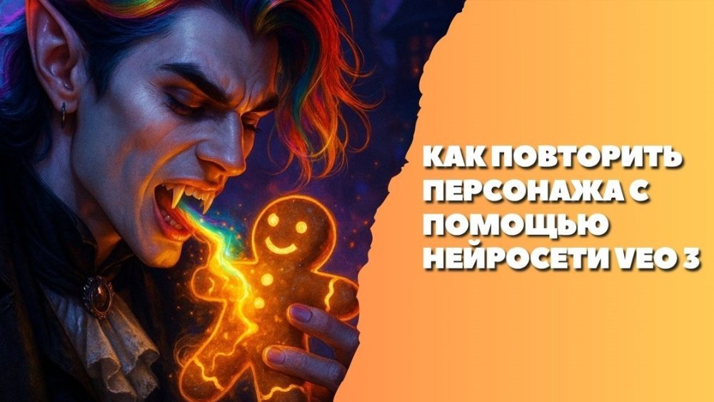 Пользователь not.found Опубликовано 4 часа назад Пользователь Поделиться Опубликовано 4 часа назад Как повторить персонажа, чтобы сгенерировать длинное видео через нейросеть Veo 3. Узнайте, как использовать нейросеть для создания персонажа по фото и генерации длинных видео. Советы по генерации персонажей для видео по фото. Визуальный контент всё чаще строится вокруг сильных, запоминающихся образов. Чтобы один и тот же герой появлялся в разных роликах или эпизодах, больше не требуется анимационная команда — с этой задачей справляется нейросеть для генерации длинных видео Veo 3. В сочетании с Sora Images можно создать персонажа по фото с помощью нейросети, задать ему стиль, мимику и характер, а затем использовать в нескольких сценах подряд. Такой подход открывает новые возможности для генерации персонажей для видео — от фан-роликов до образовательных сюжетов и коротких анимационных историй. Создаем персонажа по фото с помощью нейросети: подготовка референса Прежде чем перейти к созданию сцен, важно правильно подготовить базовое изображение — референс персонажа. Этот этап определяет, насколько точно нейросеть воспроизведёт облик и эмоции героя в дальнейшем видео. Шаг 1 Загружаем фото в нейросеть Sora Images Качество исходного изображения напрямую влияет на точность итоговой генерации. Лучше использовать фото с мягким, равномерным светом и нейтральным фоном. В Sora Images можно загрузить как своё фото, так и снимок другого человека — именно он станет основой для цифрового персонажа. Шаг 2 Вставляем промпт. Мы будем генерировать сцены с нашим героем: Стильный вампир с яркими, разноцветными волосами и радужной кровью на клыках игриво пьёт магическую энергию из сияющего пряничного человечка. Атмосфера Хэллоуина, неоновые огни, мистический туман, готическая эстетика, насыщенные цвета, кинематографичное освещение, детализированная иллюстрация в высоком разрешении. Шаг 3 Определяем размер изображения. Формат 3:2 считается универсальным — его удобно использовать на YouTube, VK Видео или Rutube. Для вертикального формата (Reels, Shorts) предпочтительно выбрать 9:16. Шаг 4 Настраиваем стиль. Для выразительного визуала подойдут любые стили в зависимости от вашей идеи. Стили усиливают цветовую насыщенность, добавляют объём и кинематографичный контраст — то, что превращает статичное изображение в основу будущего видеокадра. Шаг 5 Запускаем генерацию картинки кнопкой «Референс картинки». Шаг 6 Чтобы повторить персонажа для других сцен мы вновь загружаем фото, прописываем новый промпт и нажимаем «Референс картинки» Функция объединяет фото и текстовый промпт, формируя изображение, где лицо из исходного снимка естественно встроено в художественную сцену. Получается персонаж с реальными чертами, адаптированный под фантазийный образ. Шаг 7 Выбираем лучший результат. Из нескольких вариантов стоит выбрать тот, где эмоция и поза максимально соответствуют атмосфере Хэллоуина. Несколько сохраненных версий помогут позже при создании разных сцен видео. Промпты для генерации персонажа для видео про вампира Чтобы нейросеть Veo 3 корректно восприняла персонажа и воспроизвела его в движении, важно заранее продумать сюжет — даже короткое видео выигрывает, когда сцены логично связаны между собой и раскрывают характер героя. Сцена 1. Сон под луной Стильный вампир с яркими разн