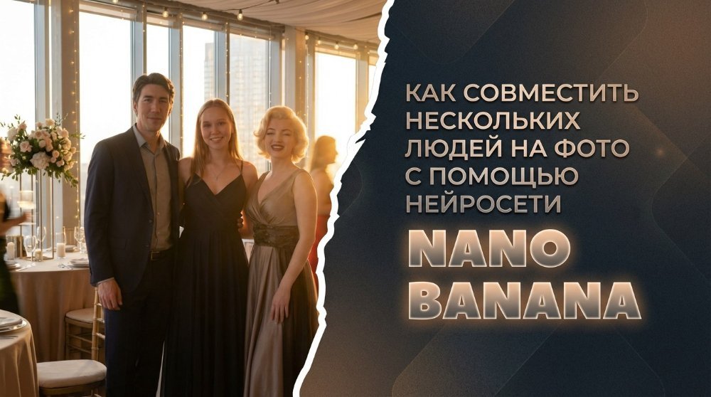 Пользователь not.found Опубликовано 2 часа назад Пользователь Поделиться Опубликовано 2 часа назад Как совместить лица людей на фото с нейросетью Nano Banana Pro? Узнайте, как нейросеть для совмещения людей на одном фото помогает создать уникальные изображения. Совместить два человека на фото с помощью ИИ стало проще благодаря передовым технологиям. Откройте новые возможности для творчества. Сложность групповой съёмки в том, что все участники редко получаются удачно одновременно. Часто лучший портрет одного человека находится в отдельном кадре, а совместной фотографии, где всё совпало, просто нет. Решением становится совмещение фото людей с помощью нейросети. Пользователи всё чаще интересуются, как совместить лица людей на фото с помощью нейросети Nano Banana Pro без видимых следов монтажа. Нейросеть для совмещения людей на одном фото способна учитывать направление света, пропорции и перспективу, благодаря чему можно совместить два человека на фото с помощью ИИ и получить реалистичный результат. Далее будет разобрано, как работает технология, приведён универсальный промпт и представлен алгоритм генерации через Telegram-бот. Зачем совмещать двух и более человека на фото с помощью ИИ Совместить два человека на фото с помощью ИИ — это не механическая вставка одного изображения в другое. Современные модели анализируют характеристики исходных кадров и приводят их к общему визуальному стандарту. Происходит не копирование, а реконструкция сцены. Алгоритм сопоставляет: Параметры освещения (направление, тени, цвет); Геометрию кадра и перспективу; Масштаб и пропорции; Глубину резкости; Согласованность поз и дистанции между людьми. Если игнорировать хотя бы один из этих факторов, итоговое изображение выглядит искусственно. Чаще всего проблему создают несовпадающие тени или разный уровень резкости. Технология востребована в разных ситуациях: Семейные фотографии. Родственник проживает в другом регионе или отсутствует на мероприятии, но требуется общий кадр. Встречи друзей. Один из участников отсутствовал или неудачно получился на групповом фото. Командные снимки. Сотрудник работает удалённо либо находится в командировке, а компании нужен единый визуальный материал. Брендинг. Формирование общего имиджа специалистов, которые физически не участвовали в одной фотосессии. Корректная синхронизация всех параметров и делает результат естественным, без визуального эффекта монтажа. Нейросеть Nano Banana Pro для совмещения людей на одном фото Для стабильного результата рекомендуется использовать структурированный запрос. Пример: Объедини людей в одну групповую сцену. Освещение — мягкое дневное слева. Температура света — 5000K. Камера — уровень глаз, угол прямой. Формат — горизонтальный 16:9. Сохрани реалистичные тени и пропорции. Синхронизируй глубину резкости. Значение параметров: Источник света — формирует тени и объём. Температура — отвечает за цвет кожи. Уровень камеры — предотвращает геометрические искажения. Формат — обеспечивает композиционную согласованность. Чёткие технические указания уменьшают вероятность артефактов. Рассмотрим на примере: У компании есть несколько индивидуальных портретов сотрудников, сделанных в разное время и при разном освещении. Часть команды работает в офисе, один специалист находится на удалёнке, другой — в ко