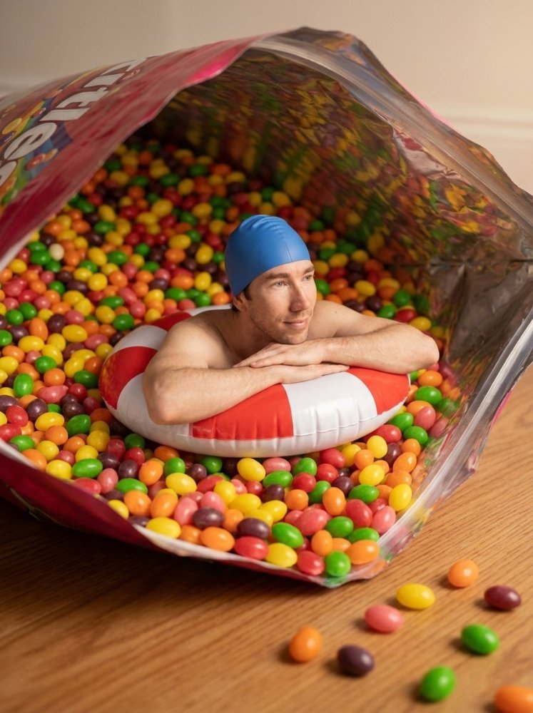 Пользователь not.found Опубликовано 12 часов назад Пользователь Поделиться Опубликовано 12 часов назад Как нарисовать портрет человека в большой упаковке через нейросеть Nano Banana 2. Нарисовать портрет человека в большой упаковке или яркий портрет девушки в пачке с конфетами — всё это можно реализовать через нейросеть Nano Banana 2 с высокой детализацией, продуманной композицией и реалистичной передачей света и текстур сцены. Нарисовать портрет человека через нейросеть сегодня можно не только в классическом формате, но и с неожиданной подачей и креативной идеей. Портрет человека в большой упаковке или яркий портрет девушки в пачке с конфетами превращаются из эксперимента в рабочий визуальный инструмент, который даёт нестандартный результат и привлекает внимание. Идея перестаёт быть просто визуальным эффектом, когда человек физически «встраивается» в продукт. Не рядом, не с ним в кадре, а внутри — как часть упаковки. Персонаж не позирует, а живёт внутри этого объекта: лежит, сидит, спит, взаимодействует с формой упаковки. За счёт этого упаковка перестаёт быть просто оболочкой и превращается в сцену. Например, коробка попкорна — это уже не коробка, а пространство, где человек может утопать в зёрнах, лежать среди них или выглядывать наружу. Масштаб меняется, привычный объект становится средой, а продукт — частью истории. Такой приём сразу решает две задачи: изображение цепляет за счёт необычного масштаба и метафоры, а продукт остаётся в центре внимания, потому что именно он формирует всю сцену. В результате получается не просто картинка с товаром, а визуал, где идея считывается за секунду и не требует дополнительных объяснений. И это цепляет. Потому что стандартные изображения перестают удерживать внимание, особенно в визуально перегруженной среде. Необычная подача, где человек интегрирован в объект, сразу создаёт контраст и вызывает интерес. Именно за счёт этого такие изображения работают лучше — их рассматривают дольше, ими делятся чаще и они легче запоминаются. Портрет человека в большой упаковке Нейросети позволяют выйти за рамки обычной съёмки, где человек просто смотрит в камеру. Портрет человека в большой упаковке — это уже не фотография, а идея, в которой человек становится частью сцены. Ключевой момент здесь — не сам объект, а взаимодействие с ним. Человек не должен выглядеть «вставленным» поверх картинки. Он должен лежать, опираться, частично погружаться в среду, как будто она физически существует. Чипсы становятся мягкой текстурой, конфеты — плотной и глянцевой поверхностью, а сама упаковка — ограниченным пространством со своим светом и отражениями. За счёт этого сцена начинает восприниматься как цельная. Почему это важно: внимание в контенте удерживают не стандартные изображения, а необычные сцены, которые ломают ожидание. Когда человек оказывается внутри знакомого объекта, возникает эффект «вау», и изображение начинает работать как инструмент вовлечения. Отдельную роль играет свет и материал. Внутренняя поверхность упаковки часто отражает свет, создавая мягкие блики и усиливая глубину. Это добавляет реализма и делает изображение визуально «дороже». Если этот момент не учесть, сцена будет выглядеть плоской, даже при хорошем промпте. Практически это означает, что один и тот же сценарий можно варьировать: менять н